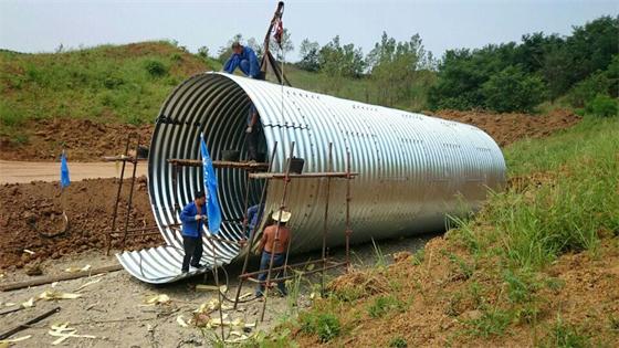 拼裝波紋涵管采用弧形波紋板拼裝而成,廣泛應(yīng)用于公路、鐵路的涵洞、通道、小橋、隧道、臨時便道、排水管道以及各種礦場巷道擋墻支護等工程。